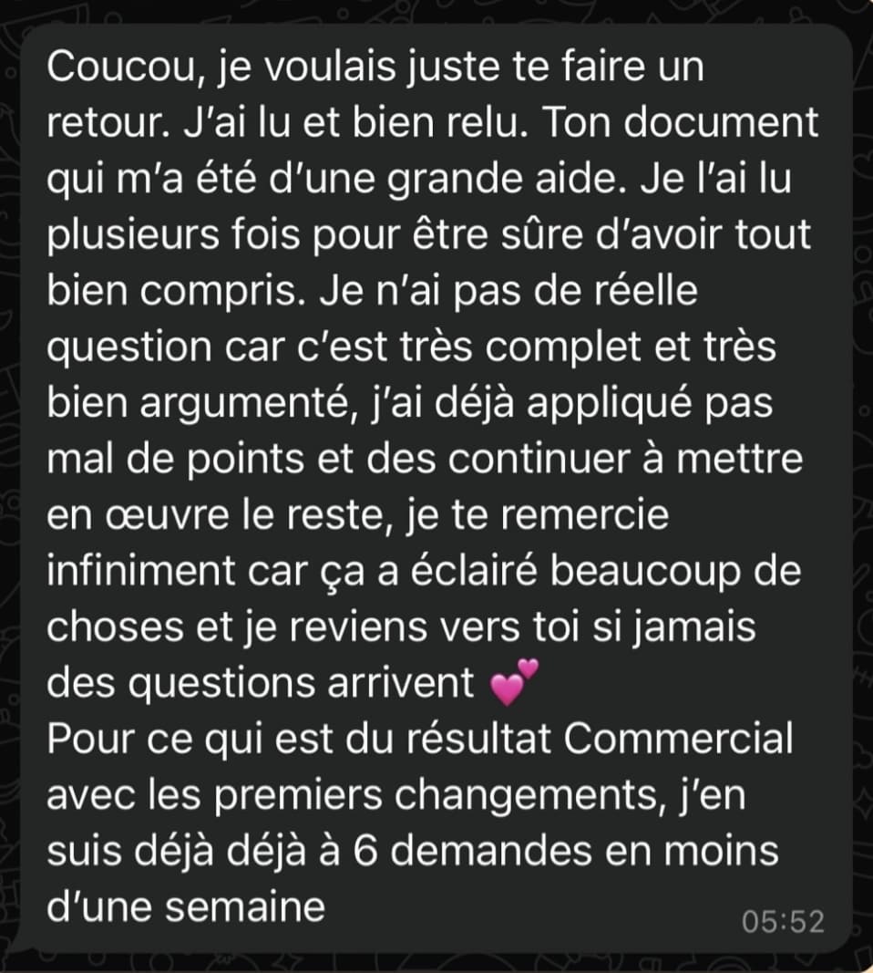 ✅ Tu veux mettre en place une stratégie de vente adaptée à ton rythme pour obtenir des résultats durables.